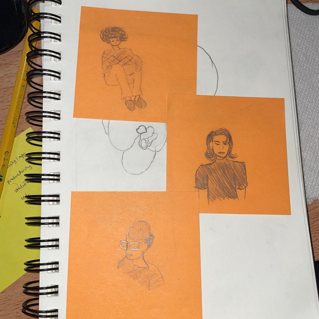 some stuff I did at work, working on drawing faces fr, I used to avoid it heavy.