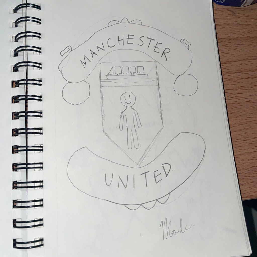 I was on IG live and I was challenged to draw the Manchester United logo from my memory and this is what I came up with. I realized the fact that the logo actually had a red devil in it and I didn’t want to draw it so I replace it with a “happy man”.